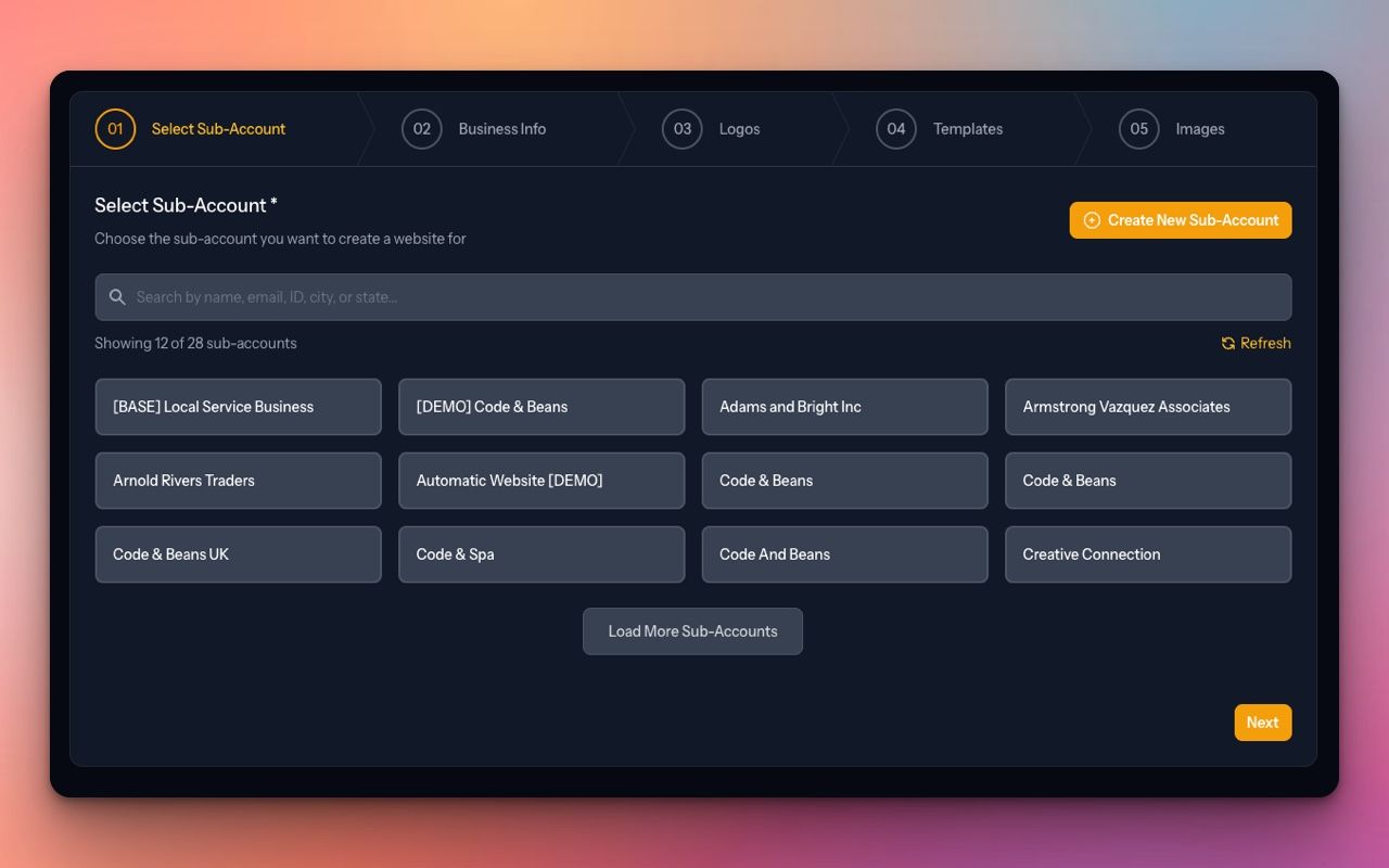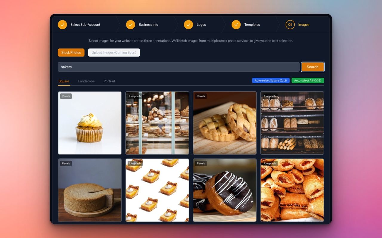 Added a 5th step to the generation process where you can select the images for your website. You will select 12 images per orientation. Or auto select them all at once. You can also change the order of how the images should appear on the website.